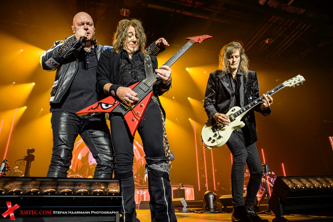 Die Setlist ist eine meisterhaft kuratierte Tour de Force. Sie ist eine Liebeserklärung an die gesamte Bandgeschichte, die nahtlos die Epochen verbindet. Man spürt den Respekt vor dem Erbe, aber auch die Freude am gegenwärtigen Moment. Höhepunkte gibt es en masse. „Twilight Of The Gods“ wirkt live wie eine monumentale Symphonie, bei der alle drei Sänger glänzen. „I Want Out“ wird begleitet durch einen mächtigen Kanonenschlag dund Pyro-Effekte, die den Saal erhellen und die gesamte Menge in einen einzigen, hüpfenden Metal-Organismus verwandelt, ist die Ekstase absolut. Dies ist mehr als ein Lied; es ist eine Hymne, ein Lebensgefühl.